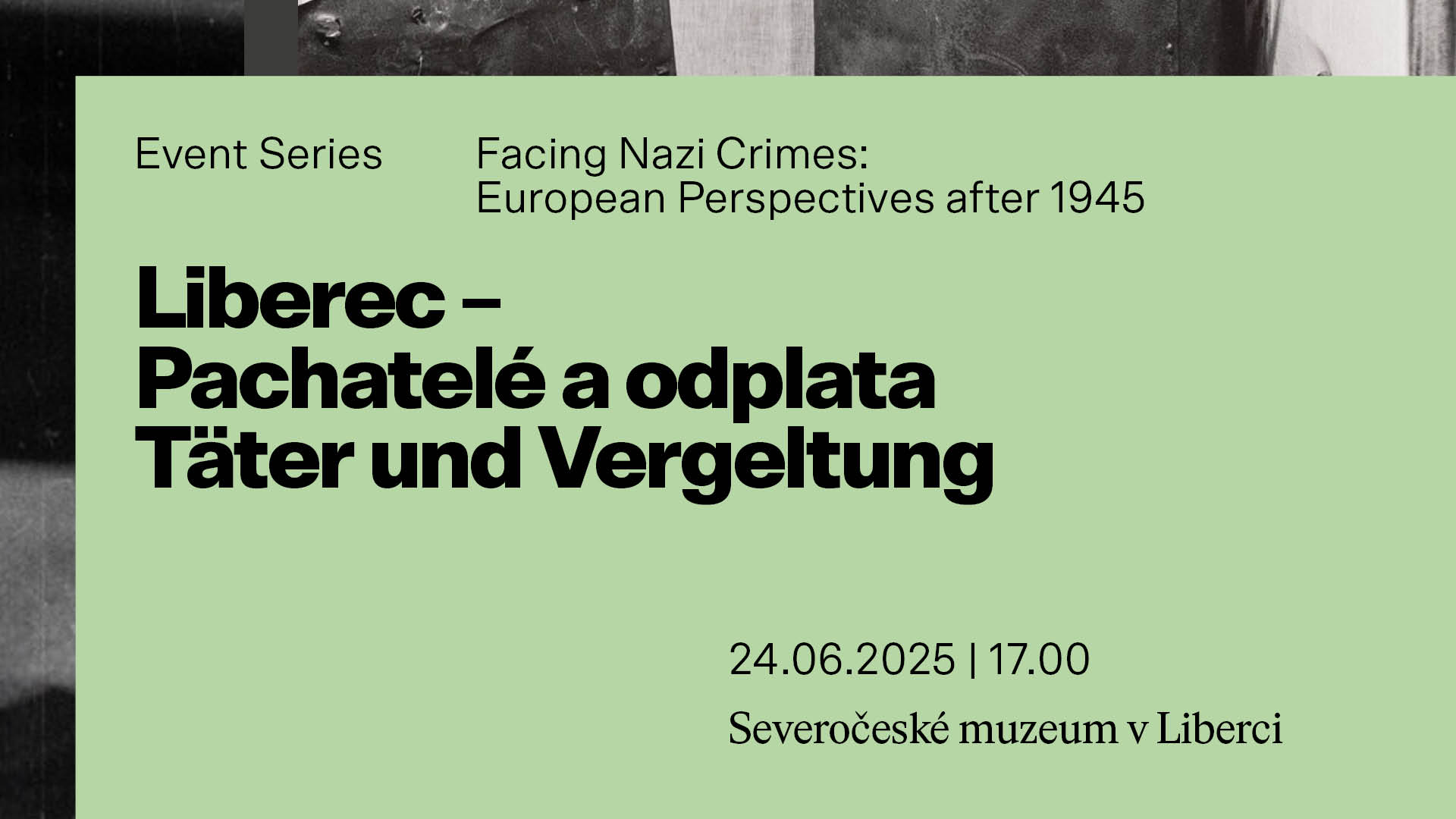Zveme vás na výjimečnou akci, která se koná v úterý 24. června od 17 hodin v AV sále MUZA | Severočeského muzea v Liberci - na panelovou diskuzi z mezinárodní série s tematikou prvních poválečných výstav (pořádaných mezi lety 1945 a 1948) o nacistických zločinech. |